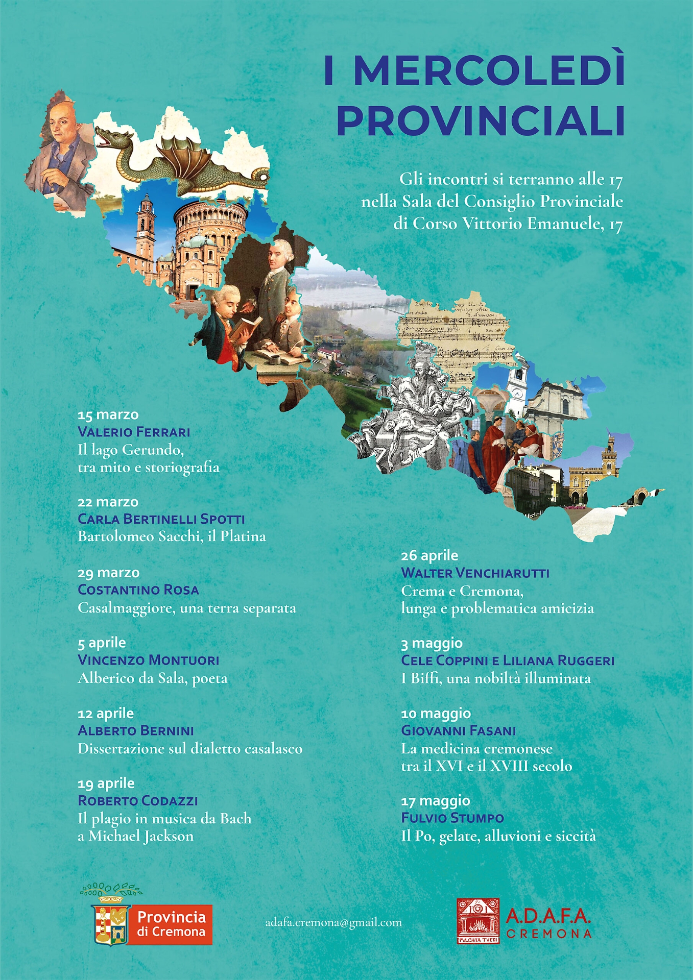 Mercoledì 29 alle ore 17, nella Sala del Consiglio Provinciale , continua la rassegna ‘I mercoledì provinciali’ organizzati dall'A.D.A.F.A.