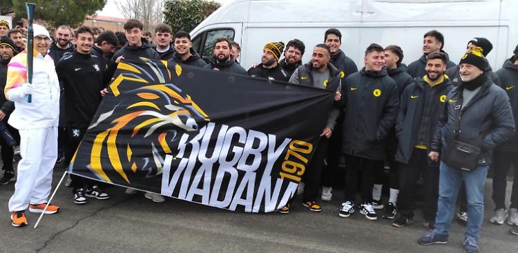 VIADANA - Breve, ma intenso: così è stato il transito della Fiamma olimpica oggi pomeriggio a Viadana, con tantissima gente lungo il percorso. La torcia è passata di mano tra 15 tedofori, che l’hanno portata lungo un circuito cittadino con partenza da via Vanoni e arrivo in via Roma. Dopo l’accoglienza dell’organizzazione in mattinata al PalaFarina, con visita del sindaco Nicola Cavatorta e dell’assessore allo Sport Alessandro Cavallari, il primo tedoforo è partito alle 13.45 circondato dai giocatori del Rugby Viadana.