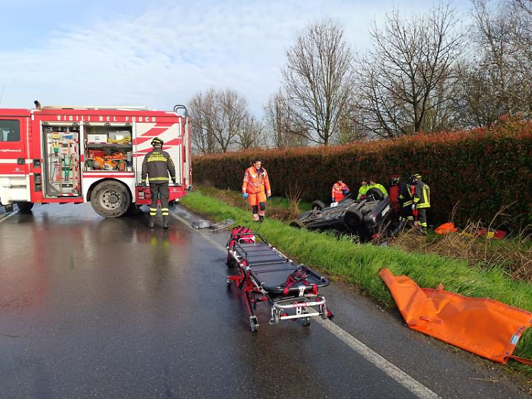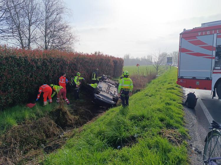 CREMA - Incidente stradale questa mattina a Crema, poco dopo le 8.30, in via Milano all’altezza della rotonda che immette verso la Paullese. Una 30enne di Dovera al volante di una Seat Ibiza, ha perso il controllo dell’auto che è uscita di strada ribaltandosi e finendo nel fosso a bordo carreggiata.