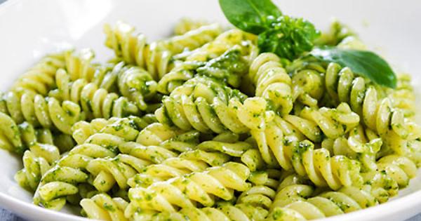 Ingredienti (per 4 persone): 400 gr di pasta, 300 gr di zucchine, 10 gr basilico, 65 gg Grana Padano, 2 cucchiai pinoli, 2 cucchiai menta fresca in foglie, 125 ml olio extravergine di oliva, 1 spicchio aglio, sale.