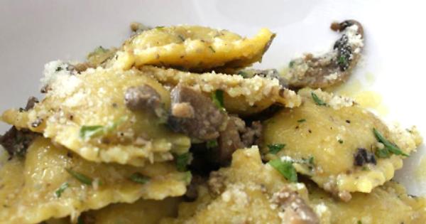 Ingredienti. Per la pasta: farina di castagne 80 gr, farina 100 gr, 2 uova, 1 cucchiaio di olio extravergine di oliva, sale, acqua. Per ilr ipieno: mezzo scalogno tritato, 1 cucchiaio di pinoli, un ciuffo di prezzemolo, 140 gr di funghi frreschi (o surgelati), sale, pepe, burro fuso, grana padano.