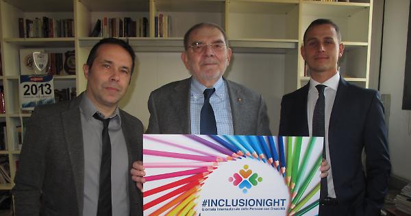 Gianluca Rossi, Francesco Boccali e Fabio Bertusi di Fondazione Sospiro con il logo dell’#inclusionight