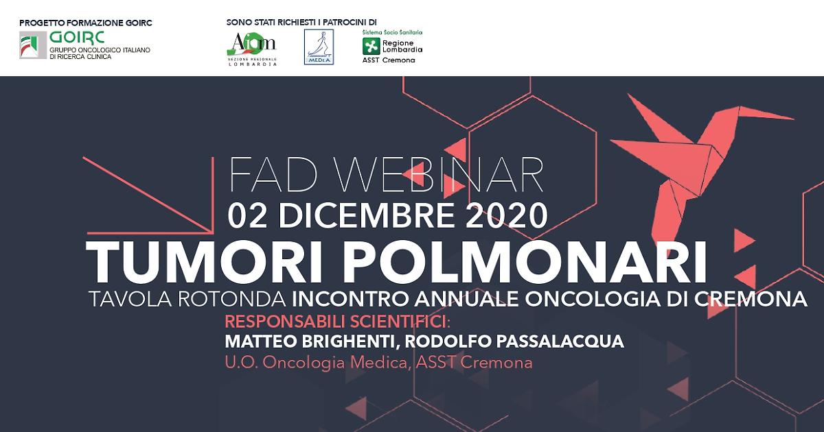 CREMONA (1 dicembre 2020) - L’U.O. Oncologia Medica dell’Ospedale di Cremona non si ferma. Il direttore dottor Rodolfo Passalacqua promuove due convegni di oncologia che si svolgeranno in modalità webinar - domani e giovedì - aperti ai professionisti del settore.