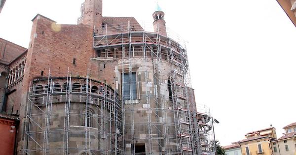 Le absidi del duomo di Cremona avvolte dalle impalcature
