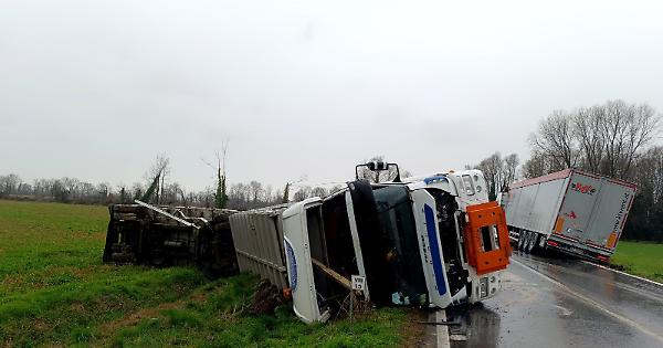GENIVOLTA - Incidente spettacolare stamattina, pochi minuti prima di mezzogiorno, sulla Provinciale 84 tra il paese e Soresina. Due mezzi pesanti, che arrivavano da direzioni opposte, si sono ribaltati oltre la carreggiata. Parzialmente uno, l’altro completamente e ha anche perso tutto il carico. Sul posto si sono immediatamente precipitati gli agenti della polizia stradale di Crema e i vigili del fuoco che hanno messo in sicurezza il perimetro.