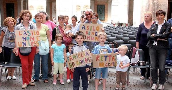 Genitori e bimbi durante la protesta sotto il Comune
