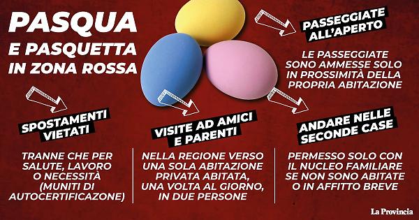 PASQUA IN ROSSO - Dal 3 al 5 aprile (come prevede già l'attuale decreto) tutta Italia sarà in zona rossa, come a Natale. Non si potrà circolare neanche all'interno del proprio comune ma è consentito, una sola volta al giorno, spostarsi in ambito regionale in massimo due persone più i minori di 14 anni conviventi per andare a trovare parenti o amici. E' inoltre sempre possibile svolgere attività motoria, ma solo in prossimità della propria abitazione, e attività sportiva all'aperto in forma individuale. (ANSA)