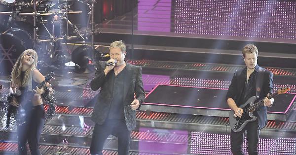 SANREMO - A 40 anni dal loro debutto all'Ariston nel 1985, i Duran Duran tornano sul palco del Festival e infiammano l'Ariston. Assente Andy Taylor, che sta affrontando un cancro alla prostata, la band propone "Invisible", "Notorious" e "Ordinary world", incitando il pubblico a cantare con loro. Proseguono con "Girls on film", prima di essere raggiunti da Victoria De Angelis, bassista dei Maneskin, band attualmente in pausa, che li accompagna in "Psycho Killer". Carlo Conti saluta Simon Le Bon, che ricorda la disavventura di 40 anni fa, quando si ruppe un piede il giorno prima di esibirsi all'Ariston. Intanto, in platea, Katia Follesa, vestita da sposa, solleva un cartello con scritto "Sposerò Simon Le Bon", tormentone dei tempi in cui Simon Le Bon era l'idolo di milioni di ragazzine. Dopo 'Wild boys', richiesta dal conduttore, il leader dei Duran Duran riceve il Premio del Comune di Sanremo e concede un bacio a stampo alla comica, mentre il pubblico intona "Bacio, bacio". "Non hai capito che cos'è successo: mi sono quasi limonata Simon Le Bon", esclama Follesa prima di lanciare il bouquet tra il pubblico. -foto Ipa Agency- xg8/mgg/red 13-Feb-25 23:17