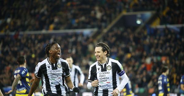 UDINE - L'Udinese di Kosta Runjaic è una macchina inarrestabile, che può sognare di andare ben oltre la salvezza: è questo il responso del Bluenergy Stadium, che assiste al terzo successo consecutivo dei suoi beniamini. Sin dai primissimi minuti ecco il puro dominio dei bianconeri, che viaggiano semplicemente a un ritmo doppio rispetto al Parma di Cristian Chivu, annichilito dalla formazione rivale. Suzuki lo salva in avvio su Atta, poi ingaggia un duello con Thauvin: tripla occasione del francese e vince sempre il portiere, che salva i suoi in ogni modo possibile. L'episodio che decide la gara arriva al 38', quando Balogh va in tilt e devia di mano per bloccare l'ennesima azione straripante di Thauvin: è rigore e il francese trasforma. Si chiude dunque definitivamente il caso con Lorenzo Lucca, visto che è lui a consegnare il pallone al compagno per tirare. Parma giustamente punito e mai pericoloso, con l'unico tiro di Lautaro Valenti (out), ma nella ripresa aggrediscono la gara i ducali: paratissima di Padelli su Man. Ehizibue e Thauvin vanno vicinissimi al raddoppio e anche Lucca, fermato dal fuorigioco. Un altro offside, proprio del centravanti, fa annullare la doppietta dell'ex Tigres e Olympique Marsiglia, semplicemente straripante quest'oggi. Solo nel finale di tempo si rivede il Parma, nonostante il passaggio alle due punte e i cambi ampiamente offensivi di Chivu: Solet è strepitoso sul tentativo di Alqmvist, Padelli salva ancora su Mateo Pellegrino. L'ex Velez non insacca e l'Udinese esulta, visto che con la vittoria la salvezza è pressoché certa: friulani a quota 39 punti, in scia a Milan (41) e Roma (40), e Runjaic è imbattuto da cinque gare (quattro vittorie e un pari). Il Parma invece torna subito a perdere, dopo la vittoria al debutto di Chivu: persiste il +2 sull'Empoli terzultimo, che domani sfiderà il Genoa dopo la sbornia delle qualificazione alle semifinali di Coppa Italia. - foto Ipa Agency - . xq3/gm/red 01-Mar-25 22:59