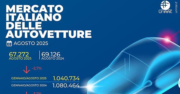 ROMA - Il settore automobilistico italiano registra nuovamente segni negativi anche nel mese di agosto 2025. Le vendite si attestano a 67.272 unità, evidenziando una contrazione del 2,7% rispetto alle 69.126 vetture immatricolate nello stesso periodo del 2024 (-15,7% sul 2023). Il bilancio dei primi otto mesi dell'anno presenta un decremento del 3,7% confrontato con il medesimo periodo dell'anno precedente, totalizzando 1.040.734 nuove immatricolazioni contro le 1.080.464 registrate tra gennaio e agosto 2024. Particolarmente significativo risulta il confronto con il 2019, che evidenzia una perdita ancora consistente del 21,6%, equivalente a 285.000 unità in meno. Le condizione negative del mercato continuano a rallentare il processo di svecchiamento del parco circolante, che con questo ritmo impiegherebbe 26 anni per essere completamente sostituito. Le vetture elettriche pure rappresentano il 4,9% delle vendite mensili, sulla stessa quota di luglio e in crescita rispetto al 3,7% dello stesso mese dell'anno precedente. Le auto ibride plug- in mostrano una performance del 7,1%, in significativa crescita rispetto al 3,5% di agosto 2024, anche grazie alle nuove disposizioni sui fringe benefit, ma in calo rispetto al 7,5% del mese precedente. Complessivamente, i veicoli a ricarica elettrica raggiungono una quota del 12,0%, inferiore al 12,4% di luglio. L'UNRAE evidenzia come la situazione di stallo del mercato sia anche influenzata dall'annuncio degli incentivi per l'acquisto di veicoli elettrici da parte del Ministero dell'Ambiente e della Sicurezza Energetica, ancora non operativi. UNRAE sottolinea l'importanza di rendere immediatamente attivo il sistema di sostegno, senza introdurre ulteriori limitazioni come l'ipotesi di un eco-score, che ridurrebbe il numero di modelli ammissibili e quindi l'efficacia nell'utilizzo dei fondi disponibili. L'Associazione sottolinea infatti i rischi legati alle molteplici restrizioni già previste, inclusi i limiti ISEE, l'obbligo di rottamazione e i vincoli territoriali, che potrebbero generare disparità significative tra i potenziali beneficiari e compromettere l'equità nell'accesso alla transizione ecologica. Inoltre, il termine del 30 giugno 2026 per la validazione delle prenotazioni rappresenta un forte limite alla capacità di utilizzare i fondi disponibili. "L'automobile resta un pilastro insostituibile per la mobilità e l'economia del nostro Paese, e vedere il mercato ancora in caduta ad agosto è allarmante, nonostante si tratti di un mese tradizionalmente poco "pesante". La flessione di quasi il 3% rispetto allo stesso mese dello scorso anno, che già aveva segnato un calo del 13,4%, conferma un settore in sofferenza ormai cronica. Nei primi otto mesi del 2025 sono state immatricolate 40.000 vetture in meno rispetto al 2024, e addirittura 285.000 unità in meno rispetto al 2019, un gap del 21,6% che pesa come un macigno", dichiara Roberto Pietrantonio, Presidente di UNRAE. "Di questo passo, la transizione ecologica resterà inesorabilmente al palo: sebbene la quota di auto elettriche pure stia lentamente salendo, è ancora largamente insufficiente. Purtroppo, l'annuncio degli incentivi da parte del MASE, ancora senza seguito concreto, ha avuto l'effetto di congelare il mercato: molti clienti - e purtroppo non solo quelli interessati alle BEV - stanno rimandando l'acquisto in attesa del bonus, e questa incertezza paralizza le vendite. Chiediamo quindi con forza che gli incentivi promessi diventino pienamente operativi e che non includano ulteriori paletti burocratici perché tutti gli automobilisti possano partecipare alla transizione in modo equo", prosegue Pietrantonio. "Servono invece misure chiare e non discontinue: gli incentivi sono utili solo se inseriti in una strategia di medio-lungo periodo, non come fiammate occasionali legate alle offerte statali. Solo così potremo recuperare il terreno perso e colmare il gap con gli altri principali Paesi europei, dove la mobilità elettrica cresce molto più rapidamente. Non meno importante, ribadiamo la necessità di una riforma della fiscalità sulle auto aziendali, da troppo tempo attesa: aumentare la detraibilità dell'IVA e la deducibilità dei costi, riducendo al contempo a tre anni il periodo di ammortamento, darebbe nuova linfa al mercato. Ora che la Delega Fiscale è stata prorogata fino a fine 2026, ci aspettiamo interventi concreti e tempestivi" aggiunge il Presidente. L'analisi della struttura del mercato del mese, sotto il profilo degli utilizzatori, evidenza per i privati una flessione più pesante del mercato. La quota si riduce di 7,6 punti al 55,1% del totale (52,4% nel cumulato, -3,8 p.p.). Le autoimmatricolazioni segnano un forte incremento in volume e guadagnano 5,4 punti, salendo al 17,3% di quota e all'11,2% nel cumulato (-0,3 p.p.). Il noleggio a lungo termine ad agosto cresce in volume e quota, guadagnando 1,6 punti, al 19,9% (23,3% negli 8 mesi, +3,1 p.p.), grazie all'accelerazione delle Captive, a fronte di un calo delle società Top. Il noleggio a breve termine nel mese sale al 2,4% del totale (+0,8 p.p.) e al 7,3% negli 8 mesi (+0,7 p.p.); le società flettono in volume e quota, cedendo 0,2 punti, al 5,4% del mercato, al 5,8% nel cumulato (+0,3 p.p.). Tra le alimentazioni, in agosto si conferma la flessione di tutti i motori endotermici: il motore a benzina cede 3,2 punti, scendendo al 24,9% (25,7% nel cumulato, -4,2 p.p.). Il diesel scende all'8,1% di share (-5,3 p.p. e al 9,7% in gennaio-agosto, -4,6 p.p.); il Gpl scende al 9,7% ad agosto (-0,9 p.p.) e al 9,2% nel cumulato (-0,2 p.p.). Le vetture ibride nel mese raggiungono il 45,4% (+4,8 p.p.) e il 44,6% (+5,5 p.p.) negli 8 mesi, con un 13,9% per le "full" hybrid e 31,5% per le "mild" hybrid in agosto. Come anticipato, le auto BEV si portano al 4,9% del totale (+1,2 p.p. e al 5,2% in gennaio-agosto, +1,4 p.p.), mentre le PHEV salgono al 7,1% (+3,6 p.p. e al 5,7% negli 8 mesi, +2,3 p.p.). L'analisi della segmentazio