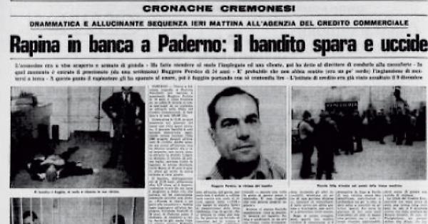 Innanzitutto vorrei complimentarmi con il vostro giornale per la bella iniziativa di abbinare la serie di libri sui delitti impuniti, ed è per questo che le voglio segnalarle un delitto (del quale sicuramente lei sarà a conoscenza) avvenuto a Paderno Ponchielli in data 27-12-1977 all’interno della filiale dell’allora Credito Commerciale) davanti a testimone oculare e tutt’ora irrisolto. Lo sfortunato cliente si chiamava Ruggero Persico, aveva 54 anni e lavorava presso l’impresa Beltrami Paolo, padre dell’attuale Carlo. Magari segnalando l’accaduto spero che qualcuno si interessi al fatto e scriva qualcosa riguardante la vittima. Achille Caffi (Paderno Ponchielli)