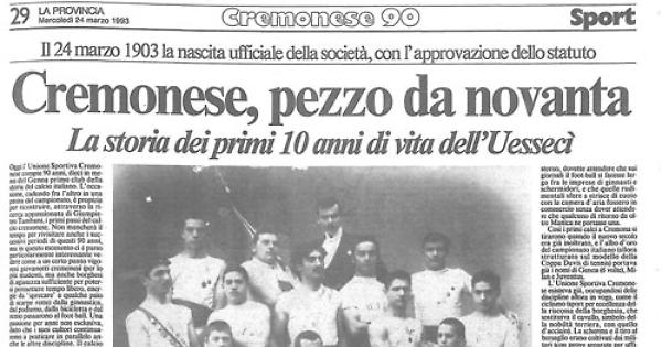 All'inizio del' 900 lo sport a Cremona era agli albori, mentre Francia ed Inghilterra celebravano già i loro grandi campioni. Nel 1888 a Cremona era sorta la Canottieri «Baldesio»; nel 1891 il Club ciclistico cremonese; nel 1900 il Circolo scherma (che poi diventerà Accademia d'armi, tuttora operante) la Società ginnastica, il Club Atletico «Nino»; c'era poi un'attività sportiva praticata dai militari di stanza a Cremona, che facevano disputare gare podistiche e ciclistiche distinte per ufficiali e sottufficiali: la «truppa» doveva assistere... e applaudire! (...)