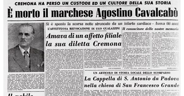 La scorsa notte alle 3,15, ha cessato di vivere il marchese Agostino Cavalcabò. Nel giugno dello scorso anno, egli era stato colpito da infarto cardiaco. Le assidue cure e la forte fibra valsero allora a salvarlo.