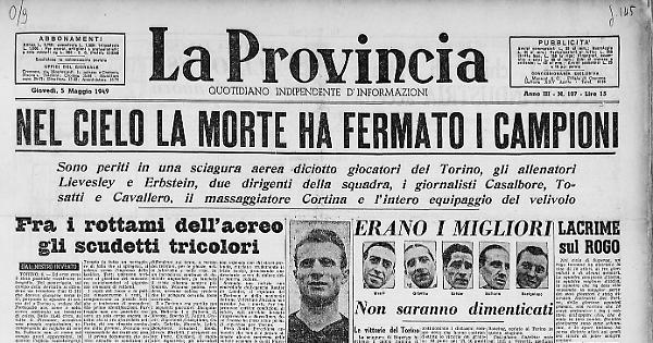 Sono periti in una sciagura aerea diciotto giocatori del Torino, gli allenatori Lievesley e Erbstein, due dirigenti della squadra, i giornalisti Casalbore, Tosatti e Cavallero, il massaggiatore Cortina e l'intero equipaggio del velivolo