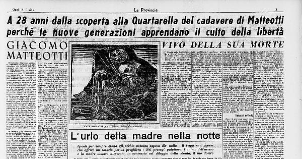 Sono passati da allora 28 anni. Il nome di Matteotti, come, quello di un martire dell'idea è passato alla storia e a lui si intitolano strade e piazze di città non soltanto italiane. Ma vi sono generazioni che non sanno: altre che sono cresciute nell'atmosfera diffamatoria con la quale si tentò di velare il rimorso. Per esse è fatta questa rievocazione.