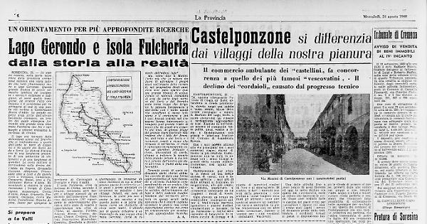 La storia rammenta che ai tempi di Barbarossa i cremonesi mossero all' assedio di Lodi con apparato nautico e terrestre per le interposte paludi. In tempi più remoti sembra che il lago sia stato più vasto a causa della minore profondità degli alvei dell'Adda e del Serio sicché le sue acque invadevano in tempi di piena territori molto più lontani che a causa della loro accidentalità si trasformavano in immense distese melmose in cui si emergevano specie di collinette sulle quali i primi abitatori costruirono su palafitte i loro villaggi. Infatti, nel caso di Soresina, la parte più alta è anche la più vecchia e tra questo punto e la parte più bassa corre un dislivello di circa sette metri. L’abitato poi di questa cittadina è attraversato da una roggia chiamata Geronda: forse in ricordo dell'antico lago?