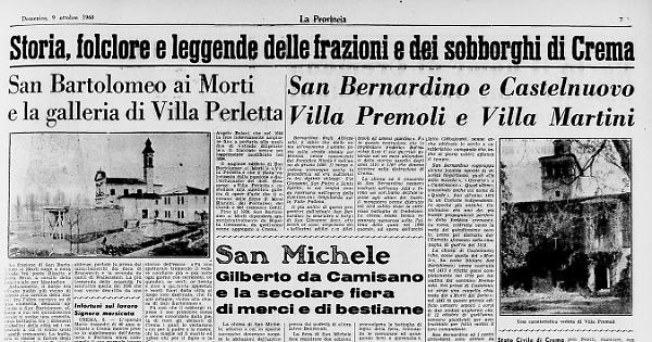 Il più antico di questi progenitori dell'attuale San Bernardino fu senz'altro il borgo di San Giovanni dove, otto secoli or sono, sorgevano dei «bellissimi edifici con dilettevoli ed ameni giardini». Fu in queste costruzioni che lo imperatore Federico Barbarossa fissò il suo quartier generale nei sei mesi abbondanti dello storico assedio degli anni 1159 e 1160 che doveva sfociare nella distruzione di Crema.