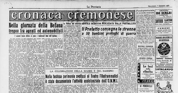 Un fatto insolito si è verificato ieri lungo le strade cittadine: una colonna di automobilisti che sfilava per le vie del centro non ha rispettato il rosso divieto del semaforo, ed i vigili, anziché bloccarla, ne hanno facilitato il transito. E non è tutto: in testa alla colonna erano agenti della polizia della strada i quali badavano a sgombrare il cammino. Erano forse sovvertite le leggi della circolazione? Nulla di tutto questo. Solo, ieri, era l'Epifania, e, in questo giorno, per una tradizione che nel corso degli anni si va facendo sempre più viva e sentita, gli automobilisti di tutta Italia, ed i loro angeli custodi, polizia della strada e vigili urbani, hanno stipulato un armistizio, una tregua d'armi. Come leali avversari che si battono, ma con reciproca stima, hanno deciso di cessare la lotta che infuria per i rimanenti giorni dello anno, e di stringersi la mano da buoni amici.