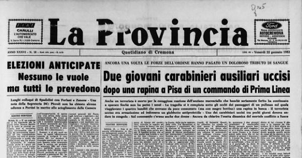 Due giovani carabinieri ausiliari uccisi dopo una rapina a Pisa di un commando di Prima Linea