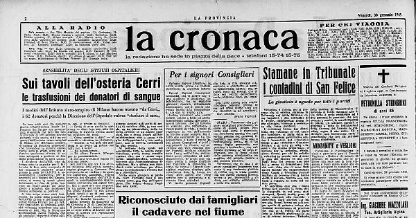 La cosa, andò così. Da qualche giorno l'Associazione locale dei Donatori del Sangue era preoccupata vivamente dal fatto che nella giornata di ieri sarebbe dovuto giungere nella nostra città un reparto dell’Istituto siero-terapico di Milano per effettuare prelievi del sangue ai donatori cremonesi, che, trovandosi in numero esuberante, sono in grado oltre che di fornire trasfusioni dirette, di essere sottoposti a prelievi al fine della preparazione di sieri umani.