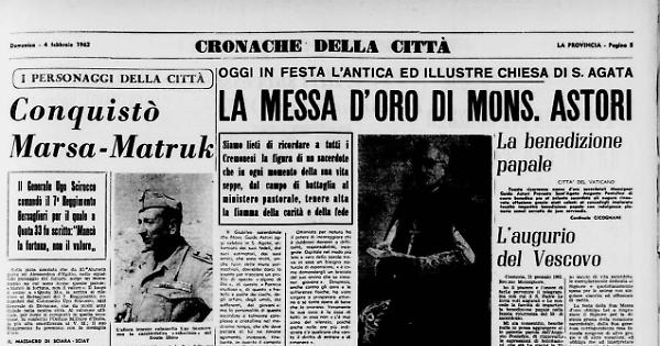 Sulla pista assolata che da El Alamein porta ad Alessandria d'Egitto, nello squallido paesaggio del Sahara, sorge un monumento su cui sono incise queste parole: «Mancò la fortuna, non il valore». Il luogo è vicino a «Quota 33», la scritta si riferisce ai Bersaglieri del 7 Reggimento, comandati dal Colonnello Ugo Scirocco, oggi Generale di Divisione, che da molti anni risiede nella nostra città. Al valoroso ufficiale, per come si comportò in quella occasione, fu conferito l'Ordine Militare d'Italia, la più alta onorificenza al V. M.; il suo Reggimento fu premiato con la medaglia d’oro.