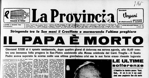 È morto Papa Giovanni XXIII ed il cuore avverte una commozione profonda che è poi l'angoscia degli umili, il dolore dei fedeli, la tristezza di quanti, in ogni parte del mondo, di ogni fede, di ogni lingua, in questi giorni hanno pregato nell'alternarsi di speranze purtroppo senza luce. Eppure questa morte è essa stessa la più grande luce che rischiara la notte del nostro tempo. Quando mai l'agonia di un Papa è diventata, in un modo tanto umano e commovente, un po' come l'agonia del mondo?