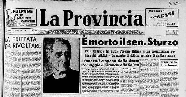 La scomparsa del senatore Luigi Sturzo ha suscitato viva impressione negli ambienti politici. Nonostante che le condizioni di salute e l'età avanzata del fondatore del Partito Popolare Italiano non consentissero ad amici ed estimatori di cullare eccessive speranze, la notizia della catastrofe è stata accolta con profonda amarezza nei vari circoli della capitale.
