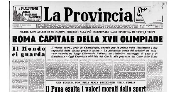Oggi 25 agosto si inaugurano a Roma, allo Stadio Olimpico, i Giochi della XVII Olimpiade. Ottantasette Paesi, dei 96 che formano il C.I.O., hanno inviato le loro rappresentative. Questa cifra segna un record, il primo che la XVII edizione dei Giochi ha conquistato.