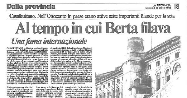 Qui infatti, al tempo in cui «Berta filava», batteva il cuore operoso della vivacissima borgata, che si identificava orgogliosamente nella presenza di ben 7 filande. Ecco allora che si può ancor oggi riconoscere quanto resta di un così prestigioso patrimonio che collocò Casalbuttano in una posizione di assoluto rilievo a livello nazionale per quanto riguarda la produzione della seta. L'elenco comincia con due veri «colossi» allora in questo importante settore: la filanda Turina (poi Ronchetti) che ai tempi d'oro contava oltre 400 dipendenti; quindi la filanda Iacini (gestita dal 1882 dalla ditta milanese Mambroni con compartecipazione agli utili ed alle perdite con i proprietari al 50 per cento). Poi la filanda Sala, la Podestà, la Strazza, la Pigoli e la Strumia. Ma il portentoso traino di queste imponenti «sette sorelle» favoriva un indotto non meno vitale che si riconosceva nei numerosi «filandiin» diffusi nelle varie abitazioni private, a riprova che il lavoro «sommerso» è sempre stato una straordinaria risorsa per l'economia nazionale. E addirittura non mancavano nemmeno vere e proprie forme di «noleggio», come quello escogitato in via Bellini da Peppina Modesti, pronta a mettere a disposizione i suoi due fornelli delle donne che avevano qualche bozzolo da filare in proprio.