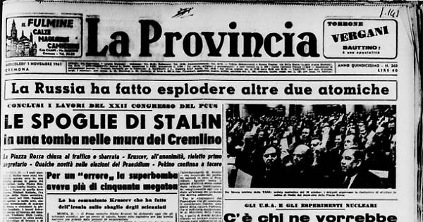 MOSCA, 31. — I resti mortali di Stalin sono stati trasferiti questa sera in una tomba presso le mura del Cremlino, sulla Piazza Rossa: è una tomba bianca, scavata a fianco di quella dove riposa Mikhail Kalinin, l'ex Capo dello Stato sovietico, che morì nel 1946. Squadre di operai, a tarda sera, stavano terminando di scavare la fossa e sistemare la pietra tombale. I lavori fervono anche all'interno del mausoleo Vladimir Ilich, per poter sistemare in altro modo il sarcofago di bronzo e di cristallo che racchiude le spoglie imbalsamate del fondatore dello Stato sovietico.