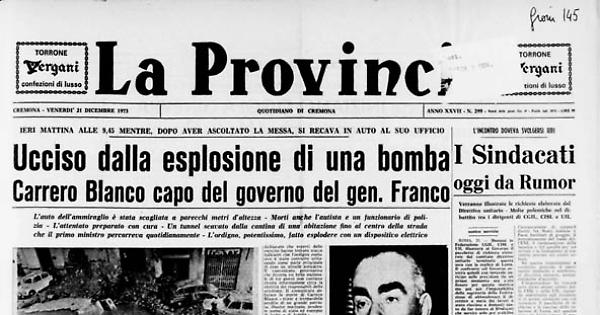Gli artificieri avrebbero trovato resti di esplosivi, e un filo nero collegato ad una scatola nera che sarebbe il detonatore. Carrero Blanco era già morto quando l'autoambulanza lo ha trasportalo in clinica. Il vicepresidente Torcuato Fernandez Miranda ha assunto la presidenza del Governo. Asturiano, 57 anni, è dal 1969 segretario generale del «Movimento nacional», il partito unico spagnolo. Docente di diritto, gran parlatore e sottile dialettico.