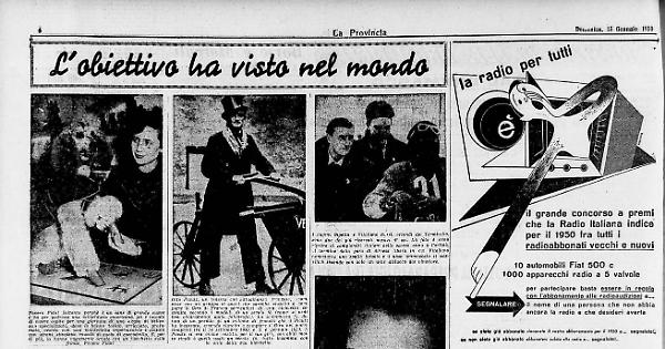 I tennisti che vi presentiamo sono due noti campioni professionisti: l'equadoriano Pancho Segura e il ventenne universitario americano Pancho Gonzales. La scena qui d'un curioso episodio capitato a Segura durante la sua ultima tournè a Parigi nella settimana di Natale. Egli stava recandosi in compagnia dei suoi amici ai campi di gioco, dove era atteso da un pubblico numerosissimo, quando si accorse di aver dimenticato su un taxi di cui si era precedentemente servito, le sue preziose racchette. Dovette perciò immediatamente recarsi in negozio del centro per comprarne delle altre. La fotografia lo ritrae mentre, nella sua caratteristica impugnatura a due mani, esegue una strana prova della solidità di una racchetta tirando il collo al suo amicone Gonzales.