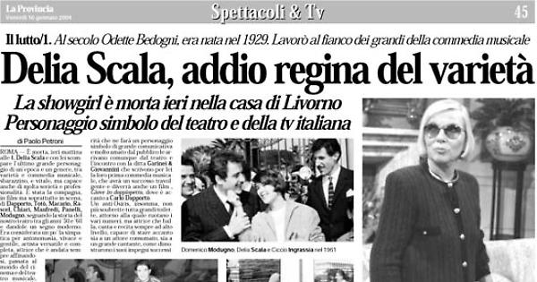 ROMA — È morta, ieri mattina alle 4, Delia Scala e con lei scompare l’ultimo grande personaggio di un’epoca e un genere, tra varietà e commedia musicale, sbarazzino, e vitale, ma capace anche di molta serietà e professionalità.
