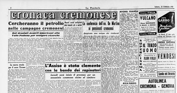 Molti avranno senza dubbio notato, in questi mesi, circolare per la città o sulle strade della provincia, una fila di strane vetturette e di automezzi cariche di ordigni, di macchine e di strumenti che servono alla ricerca del petrolio. Esse appartengono alla Western Geofisical Company, una grossa compagnia americana che per conto di altre società o di grandi complessi industriali sta attualmente trivellando il territorio di vaste regioni degli Stati Uniti, del Canada, dell'Argentina e del Paraguay. Un gruppo di questi tecnici, provenienti da un lungo e faticoso periodo di lavoro nelle desolate regioni del Gran Chaco, sta attualmente operando, in collaborazione con alcuni tecnici italiani, nella nostra provincia per conto dell'Agip, alla ricerca del prezioso liquido, di cui, a quanto pare la pianura Padana è abbondantemente provvista.