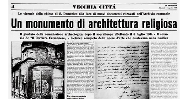 Il 17 luglio veniva diffuso un foglietto stampato alla tipografia Montaldi col titolo: «La chiesa di S. Domenico e il " Corriere cremonese"». Sul volantino si spiegavano le ragioni portate dagli esperti archeologici che avevano considerato la chiesa «un monumento d'architettura religiosa».