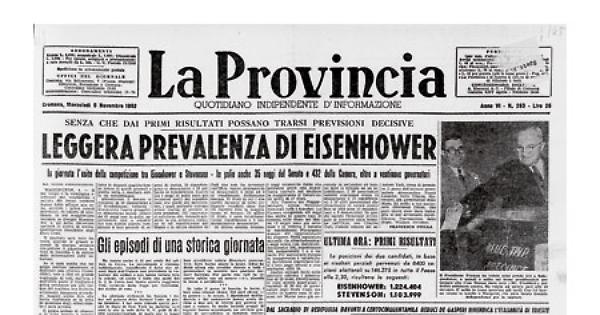 Il transatlantico «Indipendence» della «American Export Line», che giungerà in America troppo tardi per poter far votare passeggeri e equipaggio, ha telegrafato dall'Atlantico che nel corso di una votazione indicativa svoltasi a bordo, i passeggeri hanno dato 261 voti a Ike e 190 a Stevenson. L'equipaggio 141 a Ike e 256 a Stevenson. Il voto non ha alcun valore per le vere elezioni ed ha semplicemente carattere indicativo.