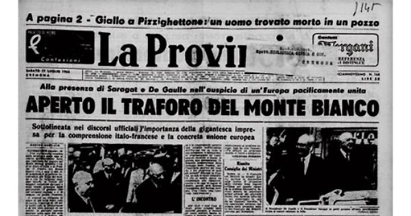 COURMAYEUR (Aosta). 16. - Una eccezionale impresa della tecnica è stata oggi al centro dell'attenzione europea: l apertura del traforo del Monte Bianco, presenti i Capì di Stato d'Italia e di Francia. II traforo del Monte Bianco con.i suoi 11.600 m. di lunghezza è « la galleria austradale più lungo del mondo e che ha richiesto maggior lavoro; la roccia del maggior massiccio europeo è stata infatti attaccata dalle perforatrici l'8 gennaio 1959 sul versante italiano e il 30 maggio su quello francese. Il traforo ha richiesto lo scavo di 560mila metri cubi di roccia, l' impiego di 160 milametri cubi di calcestruzzo e di 530 mila quintali di cemento; le giornate operaio lavorate sono state 800mila equivalenti a 6 milioni 300 mila ore. Tutta la parte inferiore della galleria, pari a circa un terzo dello scavo complessivamente fatto, è stato utilizzato per installarvi l'impianto - di aereazione della galleria, che potrà essere percorsa da 450 auto all'ora.