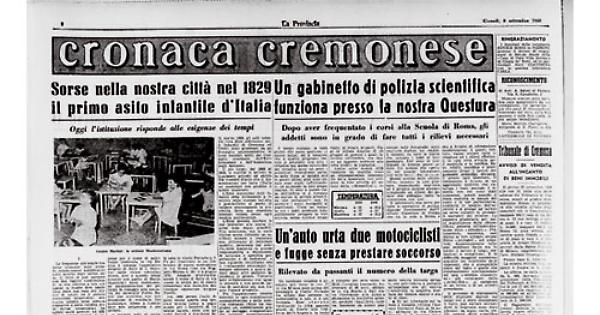 Al sacerdote cav. Ferrante Aporti deve Cremona la gioia di avere, per la prima in Italia nell'armo 1829 li primo asilo d'infanzia, con solo otto bambini ammissivi, dietro modica retribuzione. La veia prima scuola infantile di carità venne successivamente aperta nel febbraio dell anno 1831 in contrada Affaitati n. 1148-2 (ora via Ugolani Dati) per 50 fanciulli, maschi soltanto.