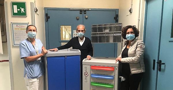 ASOLA (29 settembre 2020) - Grazie alla somma raccolta durante il lockdown attraverso donazioni private, il presidente dell'associazione Amici dell'Ospedale di Asola Stefano Sardini ha consegnato oggi a Chiara Bottura, direttore della Pediatria di Asola, due strumenti importanti per l'attività quotidiana del reparto. Si tratta di due carrelli: uno per la distribuzione dei farmaci ai bambini, dotato di settori ben distinti per il posizionamento e la conservazione dei vari tipi di farmaco, e l'altro per la distribuzione della biancheria pulita, di particolare rilievo in questo periodo di emergenza Covid. Erano presenti alla consegna anche Angela Solazzi, dirigente medico della pediatria, e Daniela Bozzoli, coordinatrice dello stesso reparto.