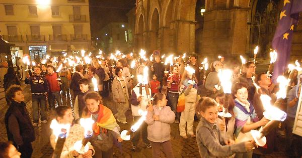 Fiaccolata in una foto d'archivio