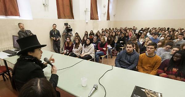 Il giorno 23 febbraio, nell’aula magna del Liceo Daniele Manin, si è tenuto un incontro con la nota scrittrice belga che racconta prevalentemente di fatti autobiografici e che ha totalizzato più di 18 milioni di copie vendute, Amélie Nothomb. Dopo aver dichiarato di aver gustato il miglior cappuccino della sua vita nel bar di fronte all’istituto e presentato il suo nuovo libro in uscita, gli alunni si sono dilettati a porre alcune domande all’autrice;