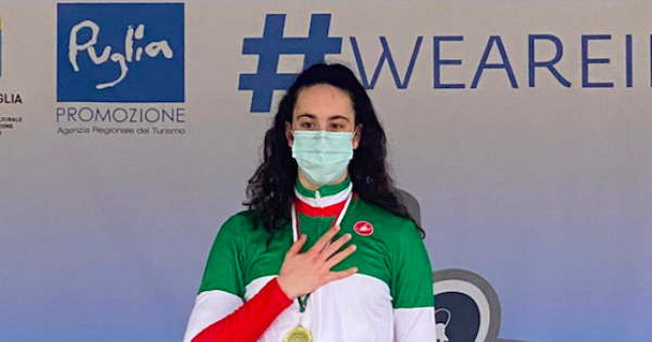 LECCE (9 gennaio 2021) - Ennesima grande impresa della giovane promessa del ciclismo cremonese Federica Venturelli. L’atleta classe 2005 di San Bassano, tesserata per il Gs Cicli Fiorin, si è laureata campionessa italiana di ciclocross categoria Donne Allieve, anticipando sul traguardo della prova nazionale di Lecce le rivali Valentina Corvi (Melavì Bike) e Vittoria Rizzo (L’Equilibrio Cycling). La Venturelli completa così una tripletta da record: nel giro di 6 giorni, ha conquistato la maglia di campionessa regionale, la maglia rosa del Giro d’Italia ciclocross e ora la maglia tricolore, viaggiando da Montodine alla Puglia con sosta intermedia nelle Marche. Per Federica si tratta del nono titolo italiano conquistato in carriera tra cross, strada e pista. Il quinto considerando solo gli ultimi sei mesi. Un filotto con pochi precedenti nella storia del ciclismo giovanile per una ragazza che continua a crescere e coltivare successi senza sosta.