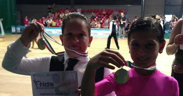 BOTTAIANO — Mattia Nicastro e Giulia Cicchetti sono due bambini di 9 anni che sono diventati campioni italiani di danza sportiva. Sono partiti da Bottaiano consapevoli di non doversi aspettare molto perché avrebbero trovato in pista coppie con più esperienza, dunque senza alcun obbligo se non quello di dare il meglio. Rimini Fiera, Padiglione Verde, Ballo da Sala (Valzer Lento, Tango, Foxtrot) 8/9 anni classe C, 11 le coppie iscritte, Giulia e Mattia sono passati in finale, tra i primi sei. E alla fine sono risultati campioni italiani, un tuffo al cuore di genitori, nonni, amici, e per gli insegnanti Elena e Mirko. Stesso copione per la Combinata Nazionale (Valzer Lento, Mazurka, Foxtrot) 8/9 anni classe C: 12 coppie iscritte, Campioni Italiani Giulia e Mattia. Due ori splendidi e inaspettati, hanno ballato bene e hanno dato il meglio di loro. Giulia, Mattia e la scuola Emozione Danza, con sede a Izano, hanno così portato due ori tricolori in un paesino di campagna con poco più di 800 anime.