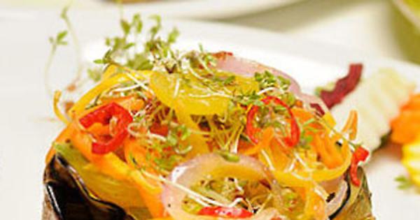 pomodorini pachino, cipolla di Tropea o Partanna, carote,b peperoncino fresco, crescione, aceto balsamico.
