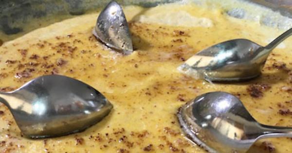Mettere a bollire in una padella di ferro 1 litro e mezzo di latte e ½ litro di acqua, quando bolle salare leggermente e versare a pioggia mescolando 3 pugni d farina da polenta, successivamente sciogliere in un po' di latte 4 cucchiai di farina bianca fino a formare una pappetta. Questa va aggiunta un po' alla volta nella padella fino alla consistenza cremosa. Cuocere il tutto per 30 - 40 minuti lasciando formare una bella crosta sul fondo. A fine cottura, prima di servirla versare abbondante burro arrostito sulla superficie.