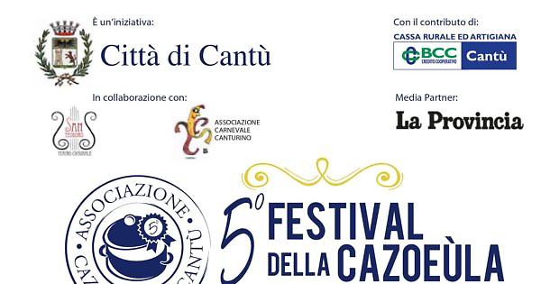 Ancora una volta i ristoratori accettano la sfida del Comune e gareggiano per vincere la “Cazoeùla d’Ora”, il premio per il miglior piatto di cazoeùla della città. Dal 17 gennaio al 28 febbraio , mangia il tuo Menu Cazoeùla presso i ristoranti in gara e fatti timbrare la cartolina fedeltà che potrai consegnare presso il Comune di Cantù all’attenzione della Segreteria del Sindaco, oppure inoltrala via email all’indirizzo: cazoeula@comune.cantu.co.it .I più fortunati saranno sorteggiati e potranno far parte della giuria popolare che parteciperà alla degustazione finale prevista per il giorno 23 febbraio. Da quest’anno anche il Teatro Comunale San Teodoro sposa la tradizione culturale e culinaria della manifestazione. Svariate iniziative in teatro, nelle splendide location dei 9 ristoratori e, sempre al San Teodoro, appuntamento il 25 febbraio con la serata Canta Come Mangi, presentata da Antonio Silva e dedicata alla Canzone Milanese: buona Musica e grandi ospiti.Per l’occasione dal 25 al 28 febbraio, i ristoratori del 5° Festival della Cazoeula avranno in menu piatti della tradizione culinaria milanese.