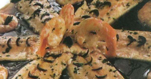 Ingredienti: 6 filetti di trota, 20 gr di burro, 1 bicchierino di Marsala, 150 gr di code di gamberi, 1 piccolo tartufo nero, 1 mazzetto di prezzemolo, 1 cucchiaio di succo di limone, sale e pepe macinato al momento.