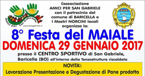 In collaborazione con i mastri norcini locali la festa in onore di "sua maestà" il maiale. Protagonista indiscusso della gastronomia tradizionale del territorio, il maiale si caratterizza per il fatto di venire utilizzato in ogni sua parte per l'uso alimentare secondo gli usi e i saperi della lavorazione di origine contadina. Nel piccolo paese di San Gabriele - a 4,3 chilometri dal capoluogo Baricella - la giornata inizia la mattina (ore 7) con la lavorazione delle carni. Segue il momento della colazione a base di uova strapazzate e pancetta fresca. Dalle 12 pranzo del contadino con primi piatti della tradizione bolognese e carne appena macellata alla griglia.