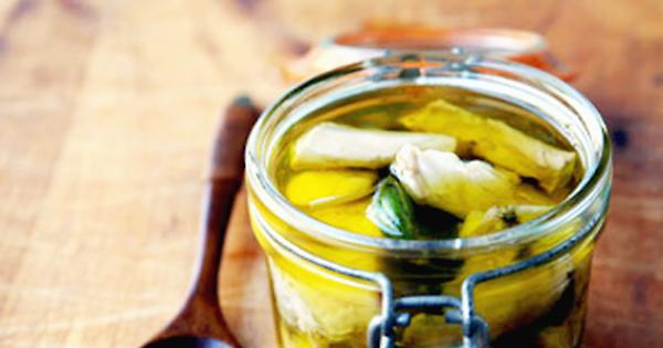 Pelate gli spicchi d'aglio e pulite delicatamente le foglie di salvia. Ricoprite il fondo di una terrina con un velo d'olio, formate uno strato di pezzetti di coniglio, alternati con foglie di salvia e qualche spicchio d'aglio lasciato intero e schiacciato, irrorate d'olio, quindi procedete sino ad esaurire tutti gli ingredienti. Alla fine il coniglio deve risultare bene impregnato d'olio e sommerso.