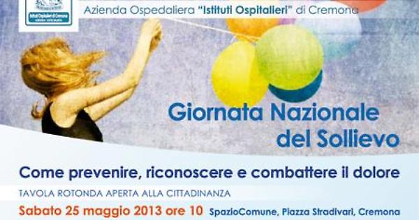 In occasione della Giornata Nazionale del Sollievo l’Azienda Ospedaliera di Cremona, in collaborazione con ASL della provincia di Cremona e l’Associazione Cremonese Cura del Dolore (ACCD) organizza una tavola rotonda aperta alla cittadinanza dal titolo “Come prevenire, riconoscere e combattere il dolore”.